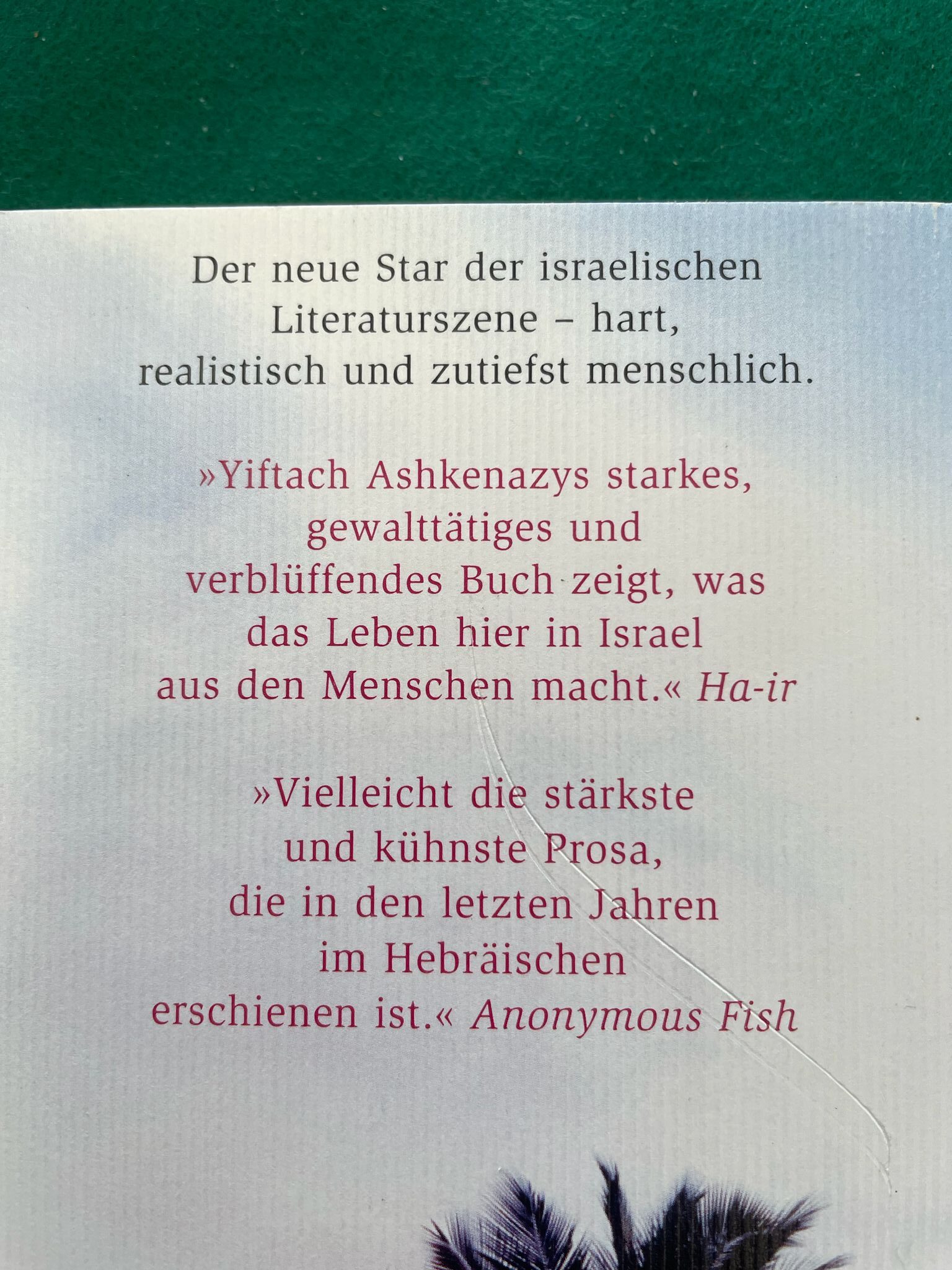 Ein junger Mann schlendert durch seine Stadt und erinnert sich an seine Jugend, seine Freunde, an erste Liebe, Rebellion und Alkoholexzesse. Und er beobachtet all die verschiedenen Menschen, die ihm auf dieser Wanderung begegnen und wie er selbst auf der Suche nach Bedeutung sind, nach Gefühl und Gegenwärtigkeit. Immer wieder scheitern sie mit ihren Träumen, geben jedoch die Hoffnung nicht auf. Lakonisch und sparsam, mit einer tiefen Liebe zu und einer untergründigen Trauer um die Menschen schildert Yiftach Ashkenazy seine Stadt und erzählt damit zugleich die Geschichte und die Gegenwart des modernen Israel.